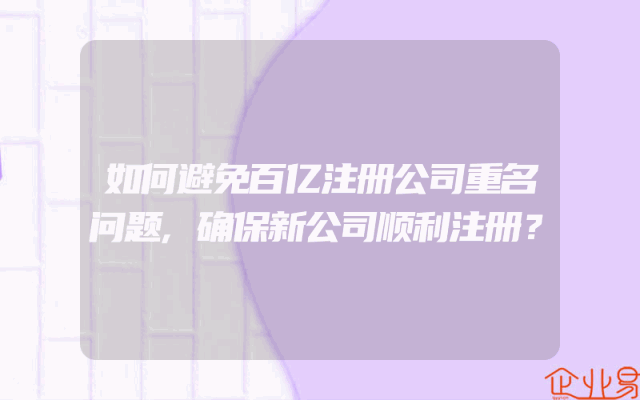 - 如何避免百亿注册公司重名问题,确保新公司顺利注册?