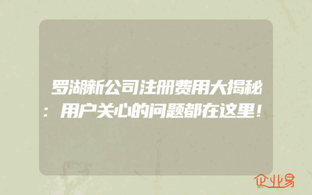 - 罗湖新公司注册费用大揭秘:用户关心的问题都在这里!