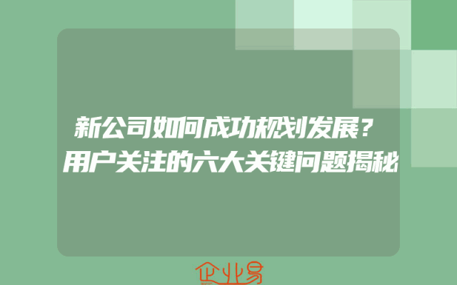- 新公司如何成功规划发展?用户关注的六大关键问题揭秘