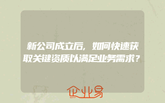 - 新公司成立后,如何快速获取关键资质以满足业务需求?