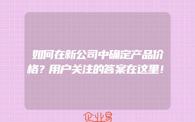 - 如何在新公司中确定产品价格?用户关注的答案在这里!