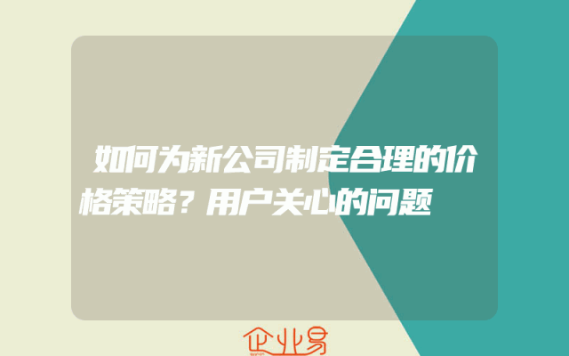 - 如何为新公司制定合理的价格策略?用户关心的问题