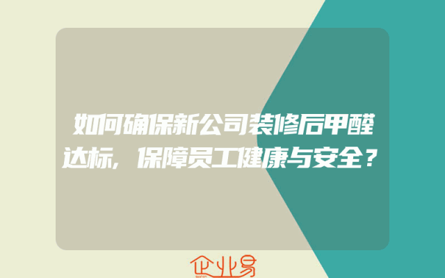 - 如何确保新公司装修后甲醛达标,保障员工健康与安全?
