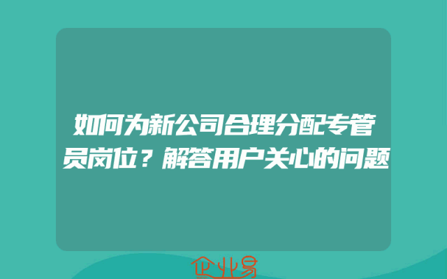 - 如何为新公司合理分配专管员岗位?解答用户关心的问题