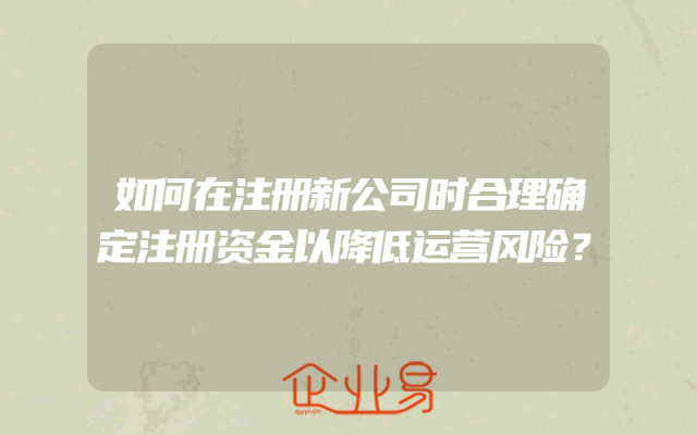 - 如何在注册新公司时合理确定注册资金以降低运营风险?