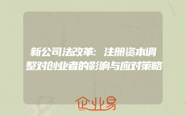 - 新公司法改革:注册资本调整对创业者的影响与应对策略