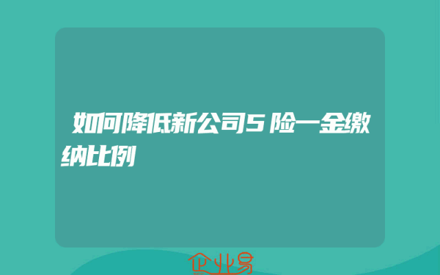 - 如何降低新公司5险一金缴纳比例?用户关心的问题解答在企业运营过程中,为了保障员工的权益,通常需要为员工缴纳五险一金。然而,对于新成立的公司来说,由于各种原因,可能会希望降低五险一金的缴纳比例。本文将针对这一问题,为您提供一些建议和解答。