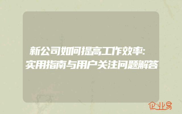 - 新公司如何提高工作效率:实用指南与用户关注问题解答