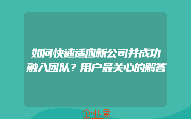 - 如何快速适应新公司并成功融入团队?用户最关心的解答