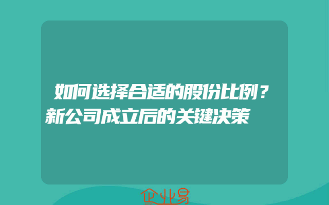 - 如何选择合适的股份比例?新公司成立后的关键决策