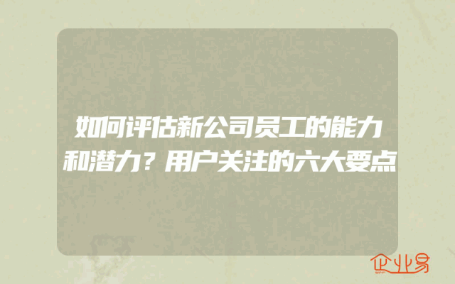 - 如何评估新公司员工的能力和潜力?用户关注的六大要点