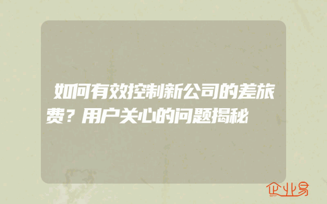 - 如何有效控制新公司的差旅费?用户关心的问题揭秘