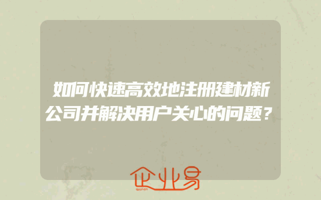 - 如何快速高效地注册建材新公司并解决用户关心的问题?