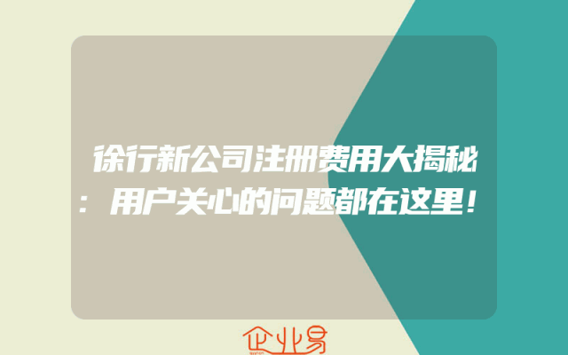 - 徐行新公司注册费用大揭秘:用户关心的问题都在这里!