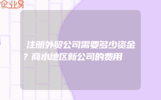 - 注册外贸公司需要多少资金?商水地区新公司的费用