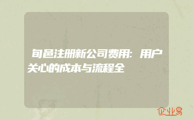 - 旬邑注册新公司费用:用户关心的成本与流程全