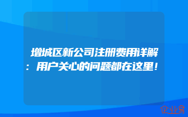 - 增城区新公司注册费用详解:用户关心的问题都在这里!