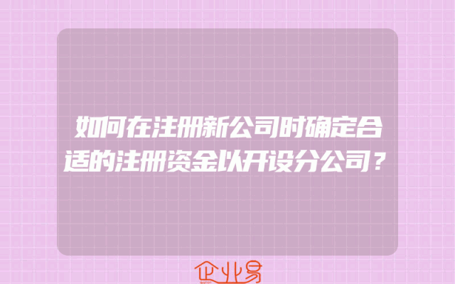 - 如何在注册新公司时确定合适的注册资金以开设分公司?