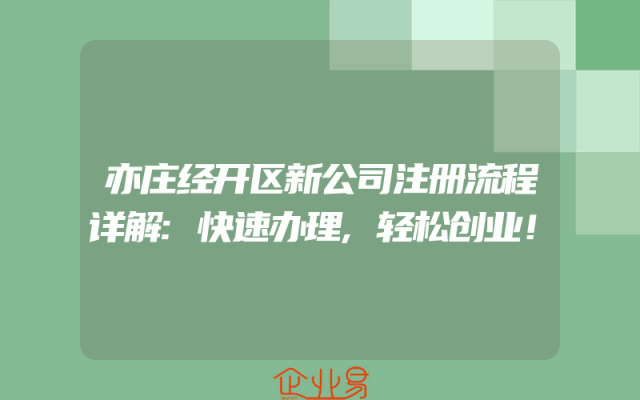 - 亦庄经开区新公司注册流程详解:快速办理,轻松创业!