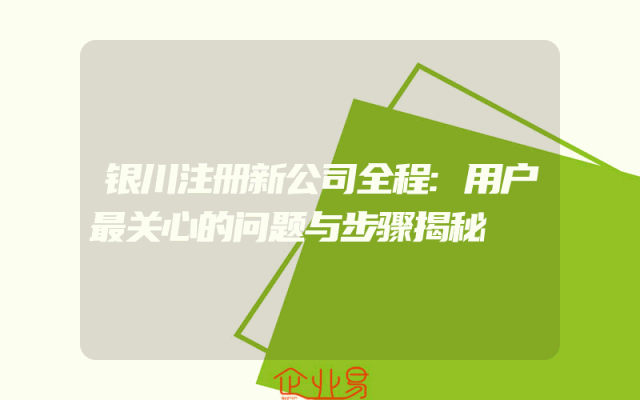 - 银川注册新公司全程:用户最关心的问题与步骤揭秘