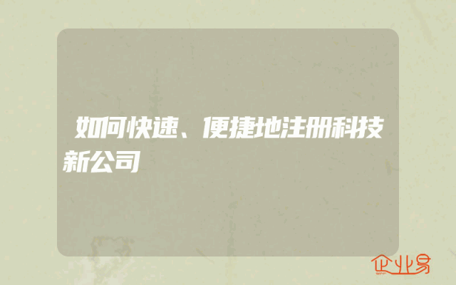 - 如何快速、便捷地注册科技新公司?用户关心的问题解答在科技行业的快速发展中,越来越多的人选择创立自己的科技新公司。然而,注册一家新公司可能涉及到许多复杂的步骤和细节。本文将为你解答关于如何快速、便捷地注册科技新公司的一些常见问题。1.注