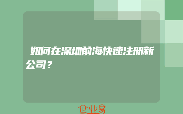 - 如何在深圳前海快速注册新公司?