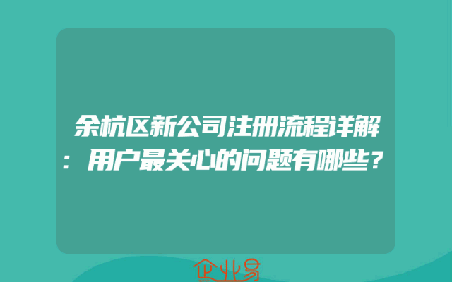 - 余杭区新公司注册流程详解:用户最关心的问题有哪些?
