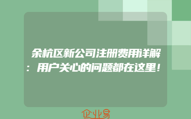 - 余杭区新公司注册费用详解:用户关心的问题都在这里!