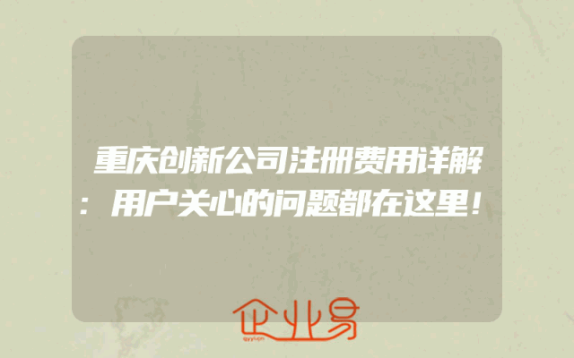 - 重庆创新公司注册费用详解:用户关心的问题都在这里!