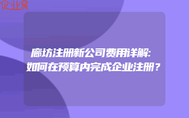 - 廊坊注册新公司费用详解:如何在预算内完成企业注册?