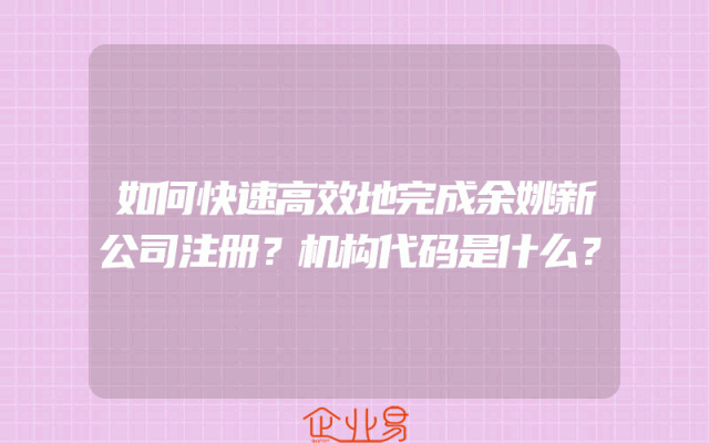 - 如何快速高效地完成余姚新公司注册?机构代码是什么?