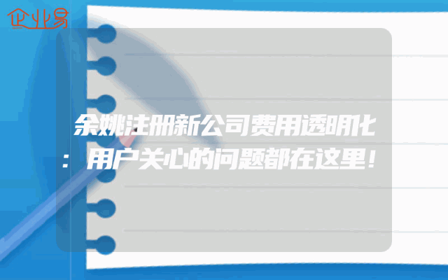- 余姚注册新公司费用透明化:用户关心的问题都在这里!