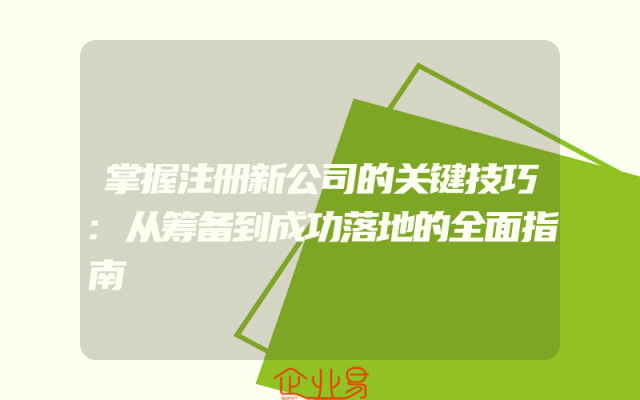 - 掌握注册新公司的关键技巧:从筹备到成功落地的全面指南