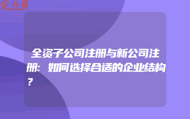 - 全资子公司注册与新公司注册:如何选择合适的企业结构?