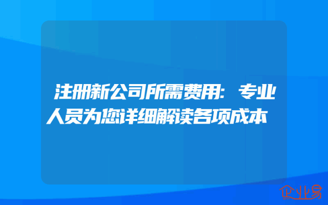 - 注册新公司所需费用:专业人员为您详细解读各项成本