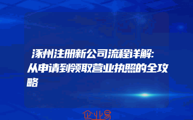 - 涿州注册新公司流程详解:从申请到领取营业执照的全攻略