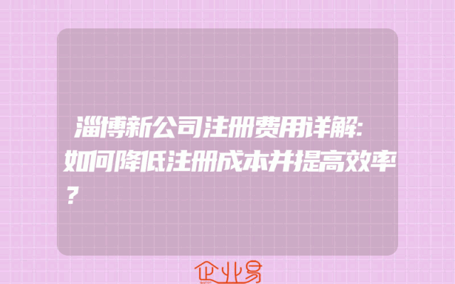 - 淄博新公司注册费用详解:如何降低注册成本并提高效率?