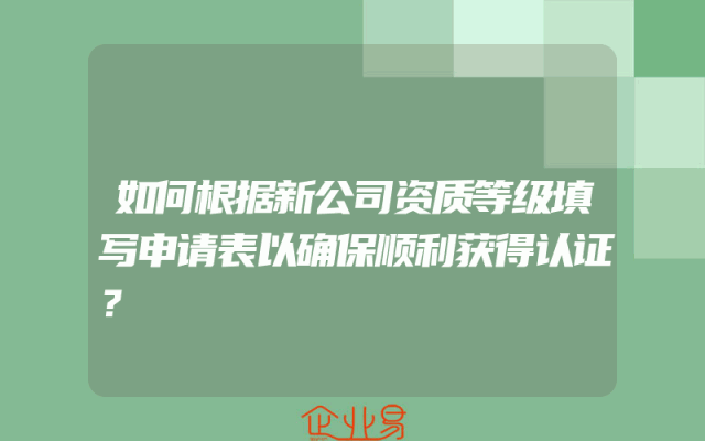 - 如何根据新公司资质等级填写申请表以确保顺利获得认证?在申请认证的过程中,了解并正确填写申请表是非常重要的。尤其是对于新成立的公司来说,了解自己的资质等级并据此填写申请表,可以帮助公司更顺利地获得认证。本文将详细介绍如何根据新公司资质等级填写
