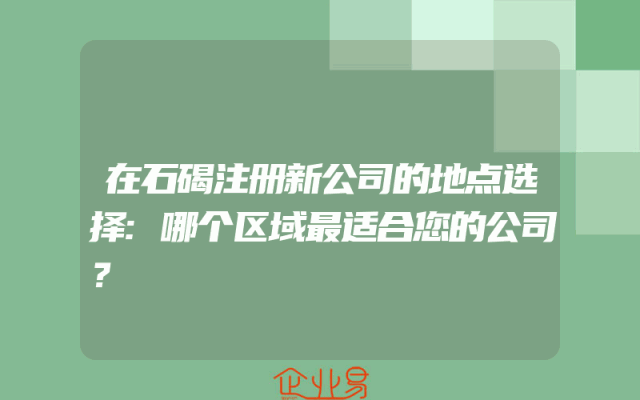 - 在石碣注册新公司的地点选择:哪个区域最适合您的公司?
