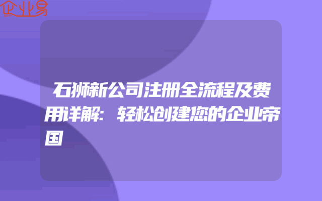 - 石狮新公司注册全流程及费用详解:轻松创建您的企业帝国
