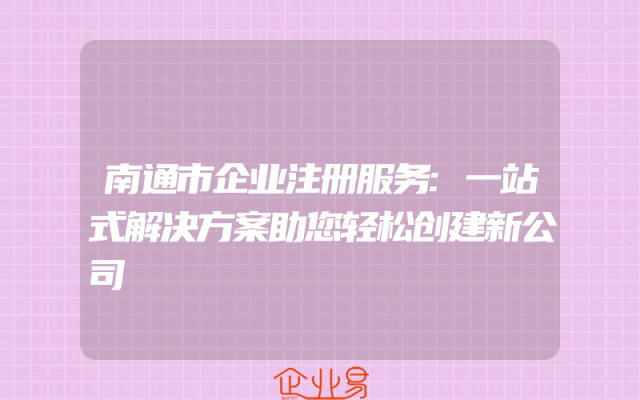 - 南通市企业注册服务:一站式解决方案助您轻松创建新公司