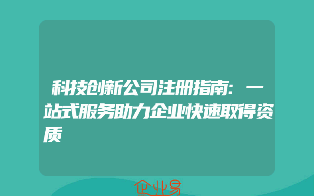 - 科技创新公司注册指南:一站式服务助力企业快速取得资质