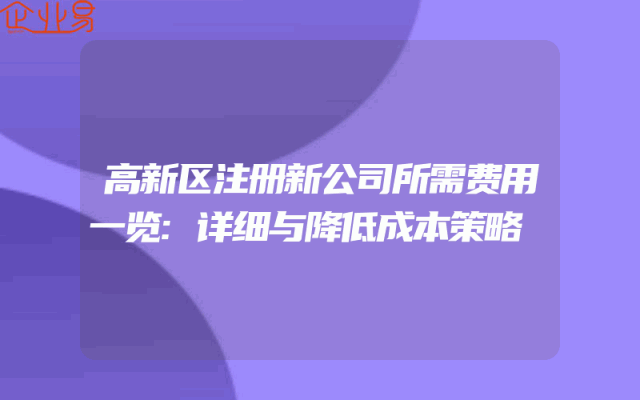 - 高新区注册新公司所需费用一览:详细与降低成本策略