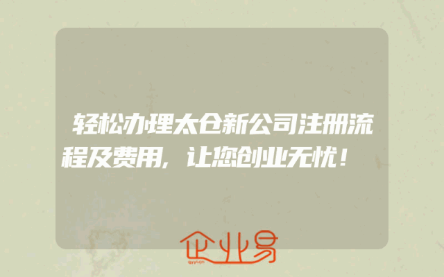 - 轻松办理太仓新公司注册流程及费用,让您创业无忧!
