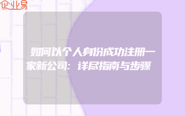 - 如何以个人身份成功注册一家新公司:详尽指南与步骤解析在创业的道路上,注册一家新公司是至关重要的一步。如果你是一个独立思考、充满激情的人,并且希望以个人身份创建一家新公司,那么这篇文章将为你提供详细的指导和步骤分析。本文将通过HTML标签来