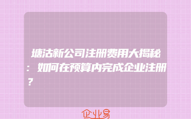 - 塘沽新公司注册费用大揭秘:如何在预算内完成企业注册?