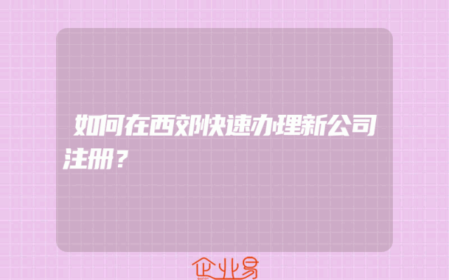 - 如何在西郊快速办理新公司注册?解答用户最关心的问题!在当今的商业环境中,拥有一家自己的公司已经成为了许多人的追求。然而,注册新公司并不是一件简单的事情,需要遵循一系列的法律程序和规定。特别是在西郊这样繁华的地区,由于人流量大,商业环境复杂