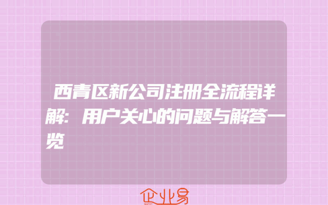 - 西青区新公司注册全流程详解:用户关心的问题与解答一览