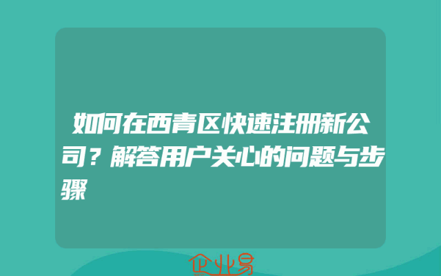 - 如何在西青区快速注册新公司?解答用户关心的问题与步骤