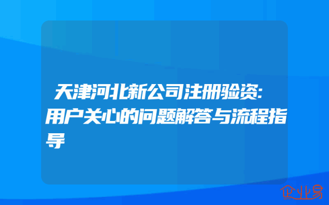 - 天津河北新公司注册验资:用户关心的问题解答与流程指导